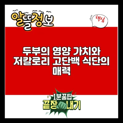 두부를 포함한 저칼로리 고단백 식단의 예시를 소개할게요.